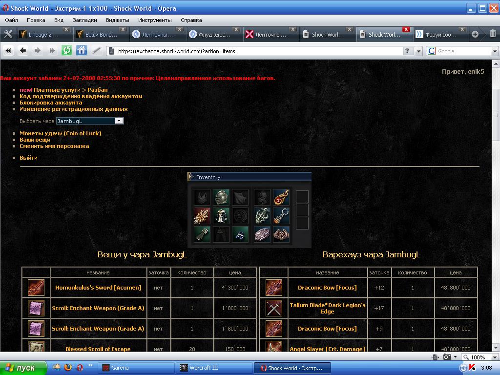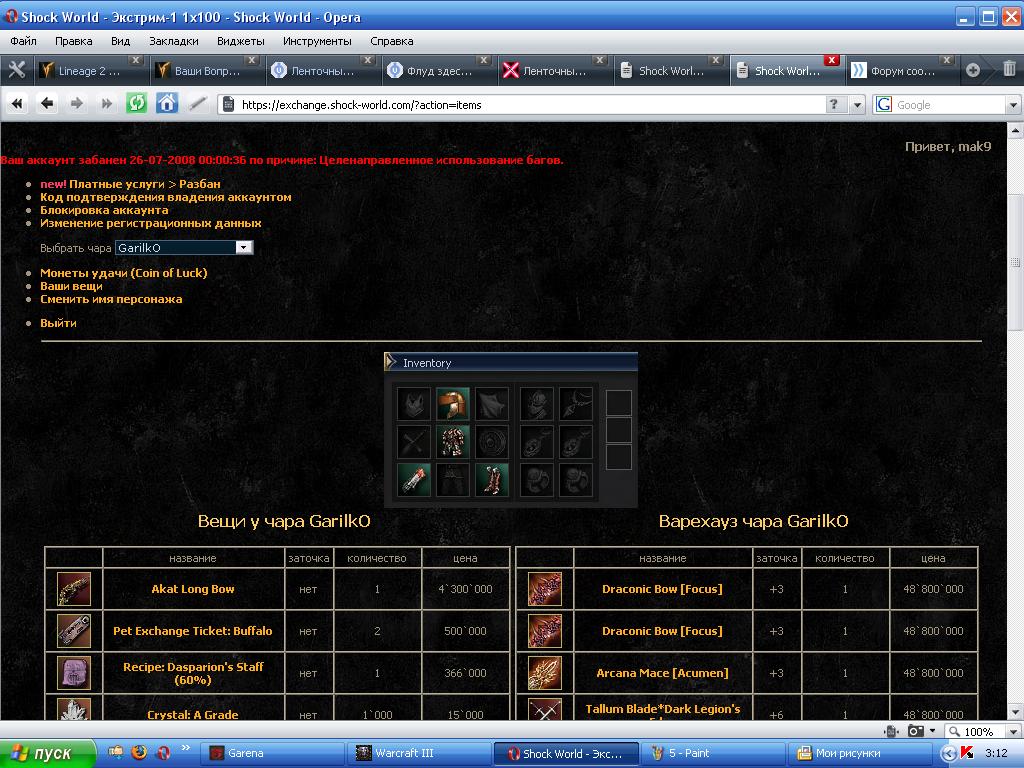 | Привет, enik10 Ваш аккаунт забанен 24-07-2008 02:55:29 по причине: Целенаправленное использование багов. Привет, mak9 Ваш аккаунт забанен 26-07-2008 00:00:36 по причине: Целенаправленное использование багов. Привет, enik5 Ваш аккаунт забанен 24-07-2008 02:55:30 по причине: Целенаправленное использование багов. Привет, eniklox17 Ваш аккаунт забанен 24-07-2008 17:33:28 по причине: Целенаправленное использование багов. Привет, mak6 Ваш аккаунт забанен 24-07-2008 17:41:43 по причине: Целенаправленное использование багов. Привет, enik3 Ваш аккаунт забанен 24-07-2008 03:04:13 по причине: Целенаправленное использование багов. Привет, mak8 Ваш аккаунт забанен 24-07-2008 02:55:31 по причине: Целенаправленное использование багов. Привет, enik9 Ваш аккаунт забанен 24-07-2008 03:04:14 по причине: Целенаправленное использование багов. Привет, fefa91 Ваш аккаунт забанен 25-07-2008 22:40:02 по причине: Целенаправленное использование багов. Привет, enik4 Ваш аккаунт забанен 25-06-2008 19:41:48 по причине: Передача аккаунта. Привет, mak7 Ваш аккаунт забанен 25-06-2008 19:43:49 по причине: Передача аккаунта.